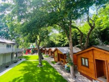 Domek piętrowy wolnostojący - 6-8 osobowy o powierzchni ok. 50 m², komfortowo wyposażony. Na dolnej kondygnacji jest łazienka, telewizor LCD, Wi - Fi, lodówka, czajnik elektryczny, naczynia stołowe, stół kawowy, dwa łóżka pojedyncze oraz rozkładana kanapa 2-osobowa. Na piętrze są dwa pokoje, jeden w formie antresoli, drugi zamykany. Przed domkiem jest weranda z meblami ogrodowymi (stolik + 4 krzesła).